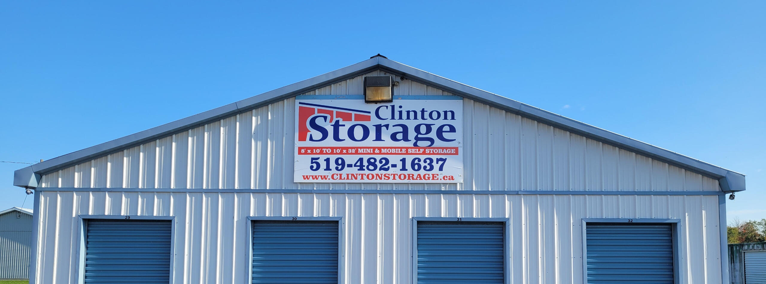 Clinton Storage offers Self Storage Units in sizes from 8’ x 10’ to 10’ x 32’. Centrally located in Clinton Ontario, convenient to the Bayfield and Goderich area.---38331 Bayfield Road • Clinton, ON • N0M 1L0 •